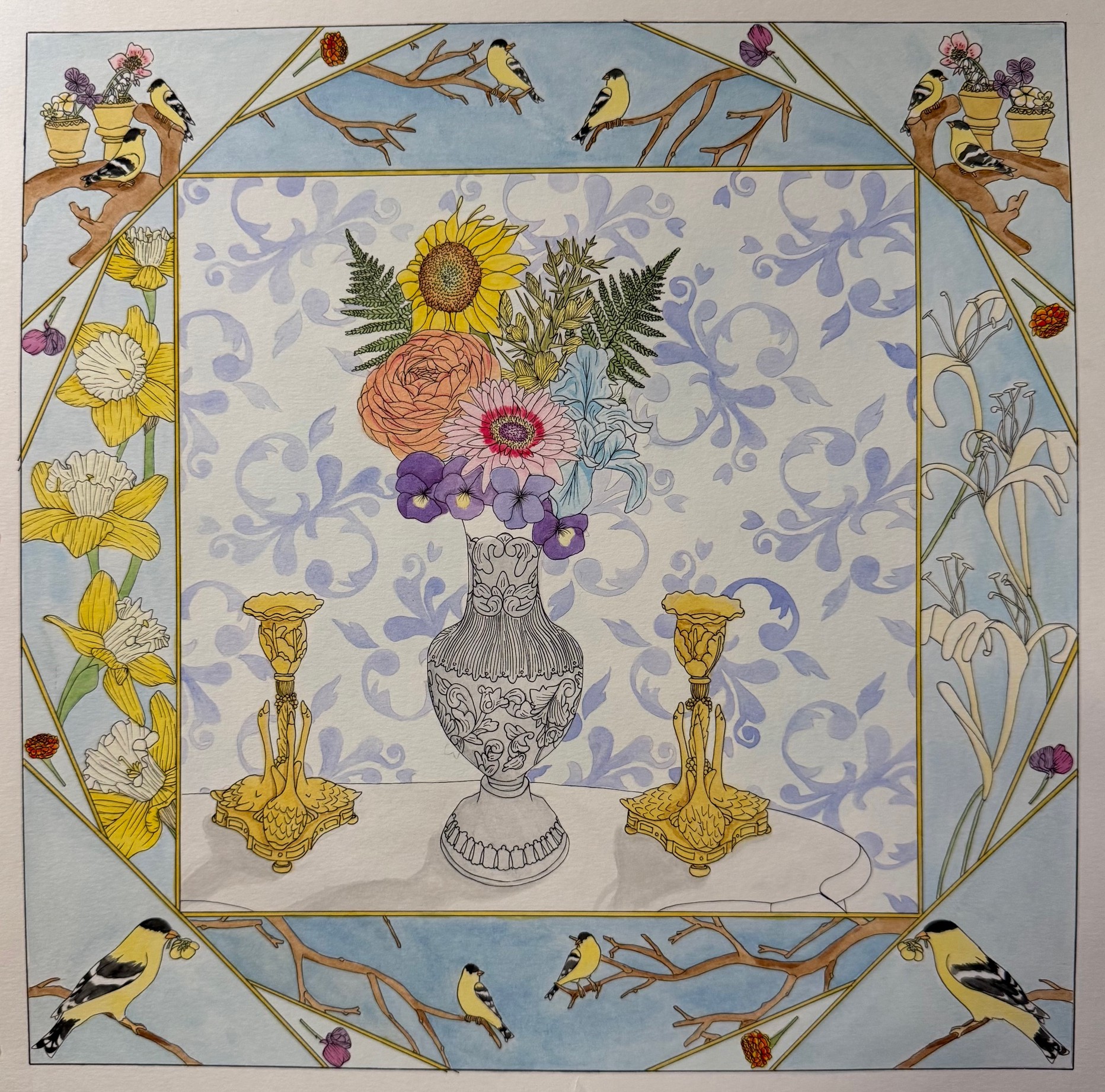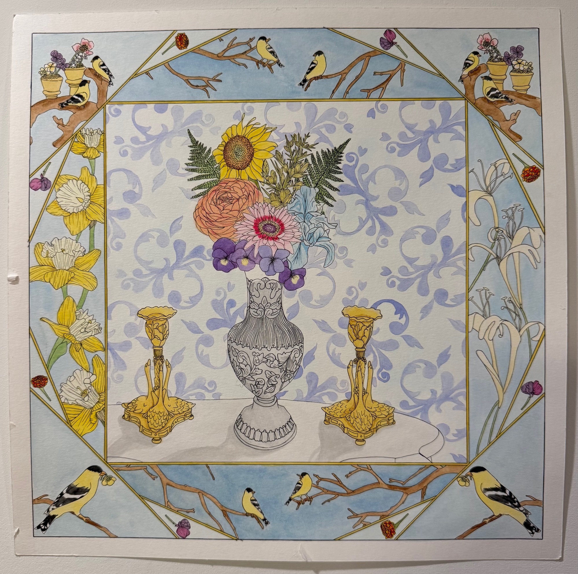 My work focuses on storytelling. Passion my characters have for life, art, and romance shown as tangible feelings in my works. Through time people have been passionate about many things and I want my art to show my passion for telling stories both old and new. My compositions are influenced by artists such as Giovanni Battista Piranesi, music, and the artistic stylings of old Disney Movies such as Snow White, Fantasia, Cinderella, and Sleeping Beauty. Using intricate architecture to place my characters in and using the music I’m moved by to guide the composition.